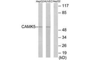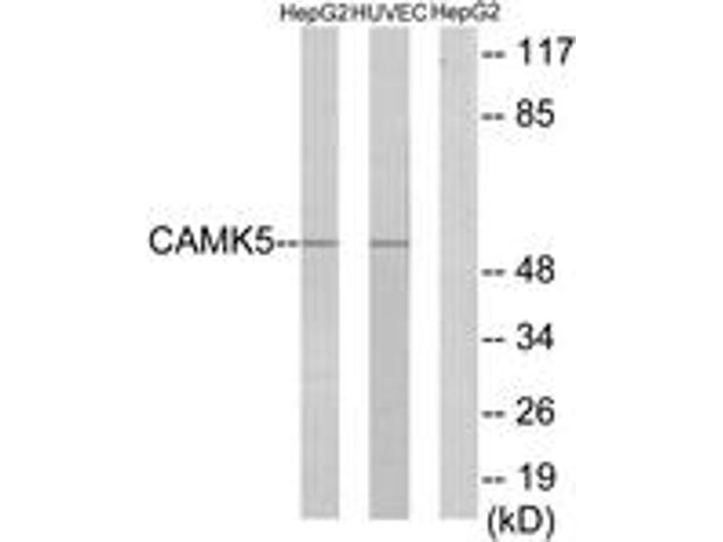 - The antiserum was produced against synthesized peptide derived from human CAMK5.