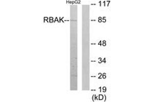 - The antiserum was produced against synthesized peptide derived from human RBAK.