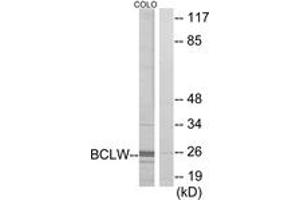 BCLW Antibody detects endogenous levels of total BCLW protein.