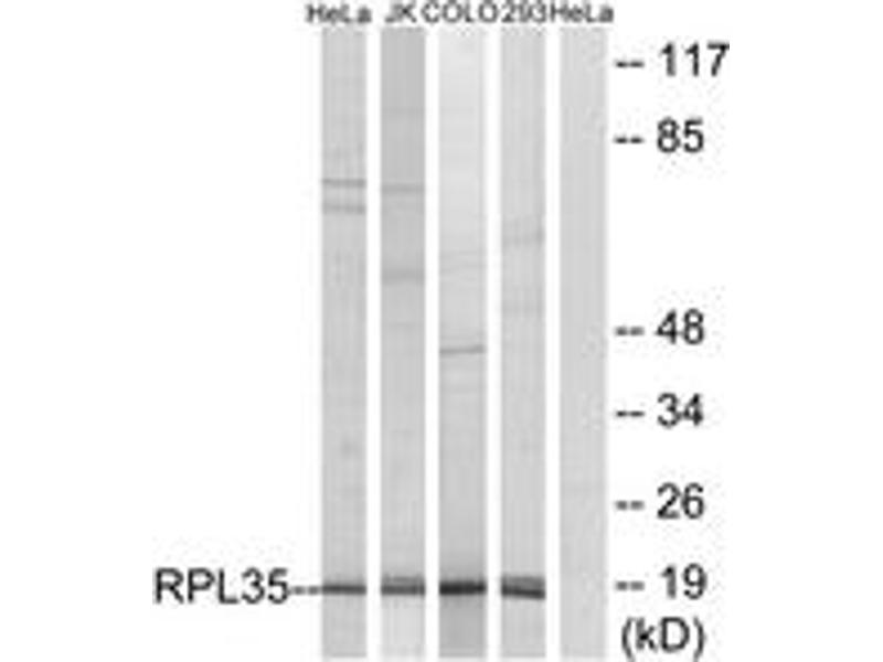 - The antiserum was produced against synthesized peptide derived from human RPL35.