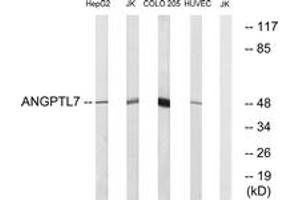ANGPTL7 Antibody detects endogenous levels of total ANGPTL7 protein.