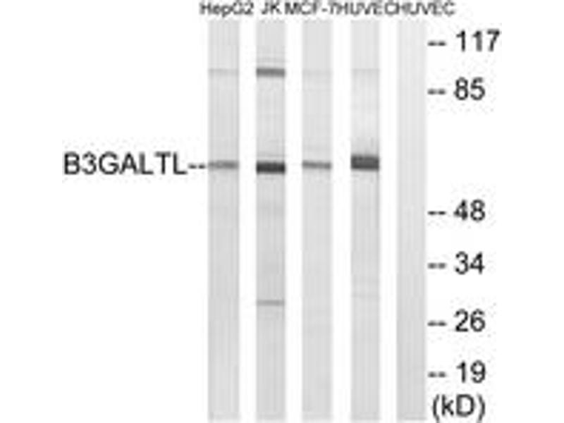 - The antiserum was produced against synthesized peptide derived from human B3GALTL.
