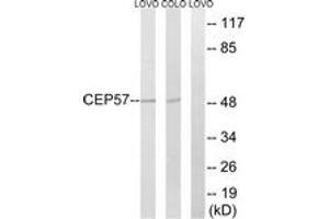 - The antiserum was produced against synthesized peptide derived from human CEP57.