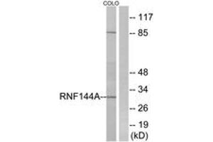 - The antiserum was produced against synthesized peptide derived from human RNF144A.