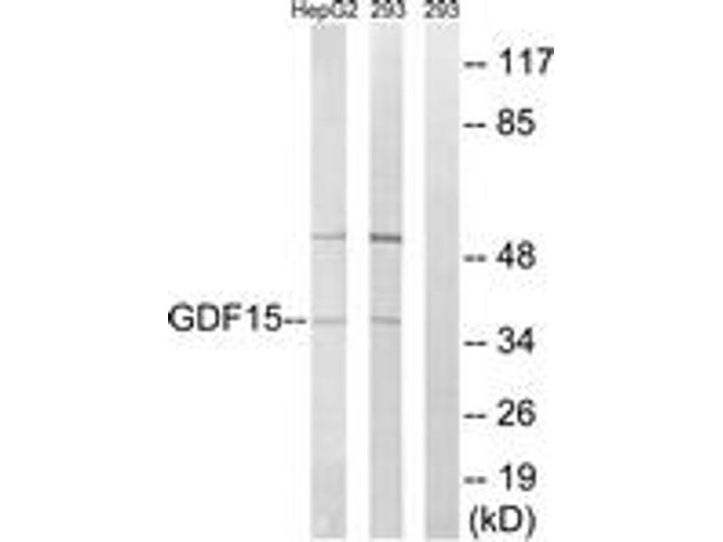 - The antiserum was produced against synthesized peptide derived from human GDF15.