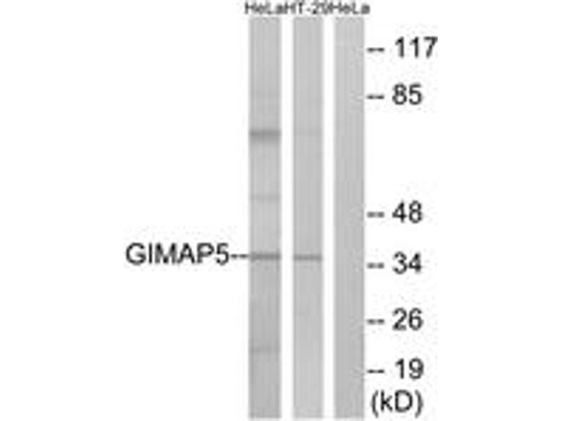 - The antiserum was produced against synthesized peptide derived from human GIMAP5.