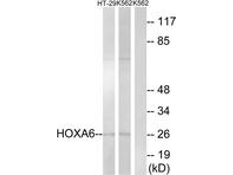 - The antiserum was produced against synthesized peptide derived from human HOXA6.