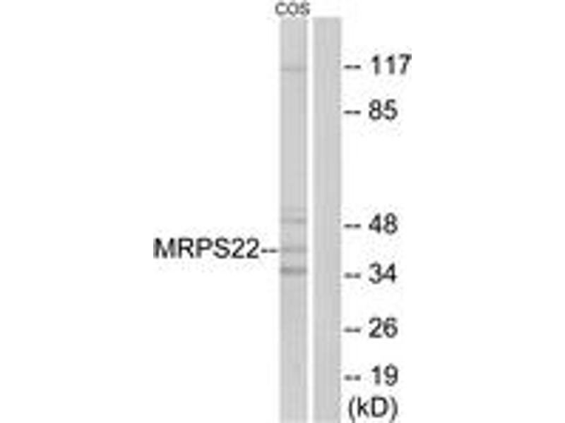 - The antiserum was produced against synthesized peptide derived from human MRPS22.