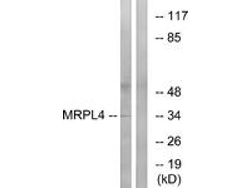 - The antiserum was produced against synthesized peptide derived from human MRPL4.