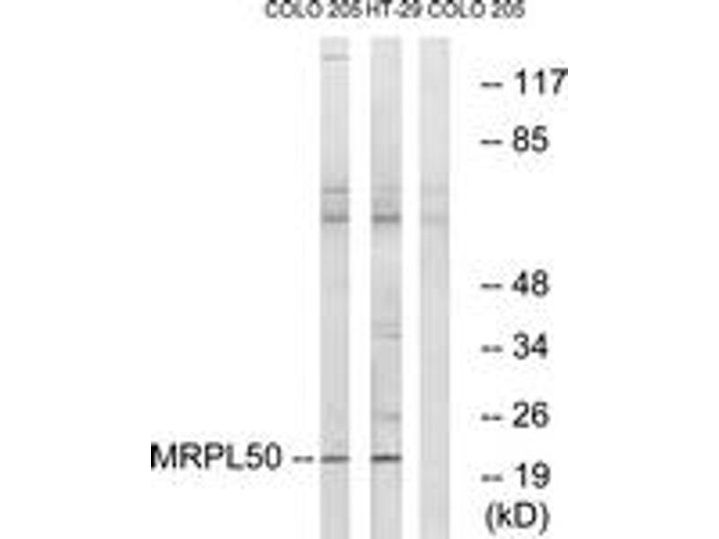 - The antiserum was produced against synthesized peptide derived from human MRPL50.