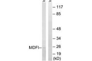 - The antiserum was produced against synthesized peptide derived from human MDFI.
