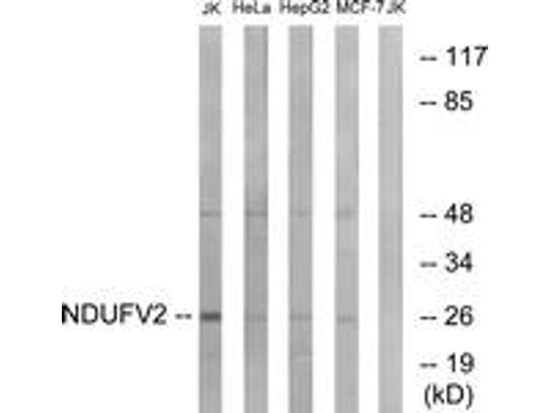 - The antiserum was produced against synthesized peptide derived from human NDUFV2.