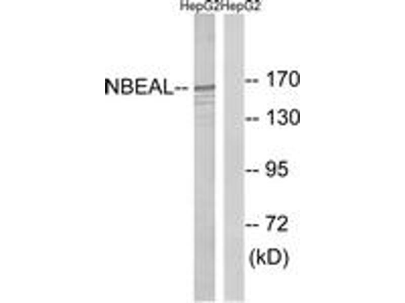 - The antiserum was produced against synthesized peptide derived from human NBEAL1.