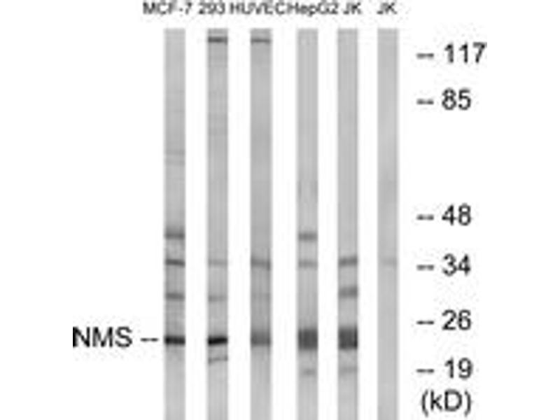NMS Antibody detects endogenous levels of total NMS protein.
