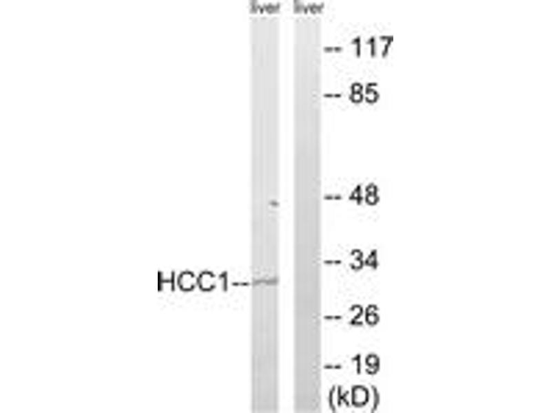 HCC1 Antibody detects endogenous levels of total HCC1 protein.