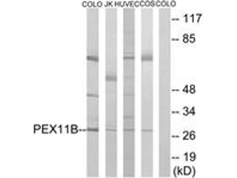 - The antiserum was produced against synthesized peptide derived from human PEX11B.