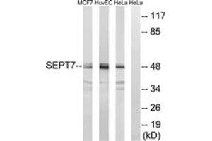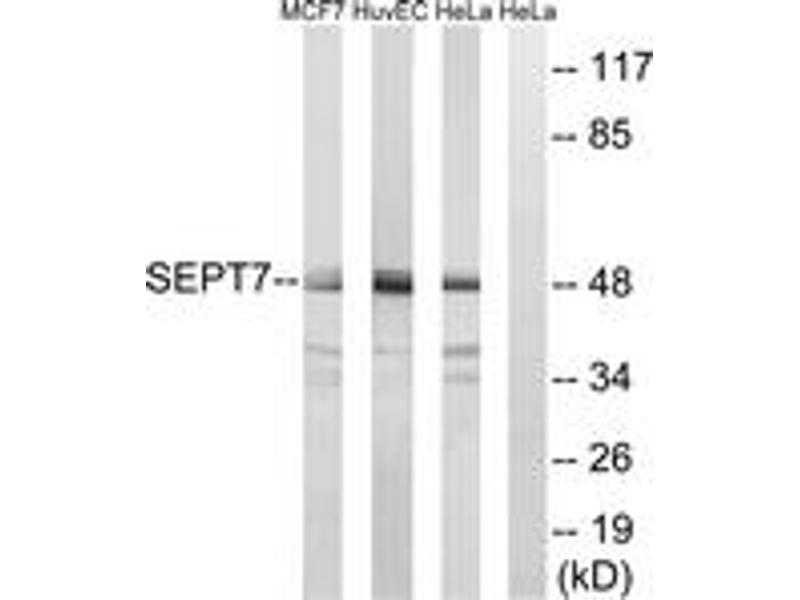 - The antiserum was produced against synthesized peptide derived from human SEPT7.