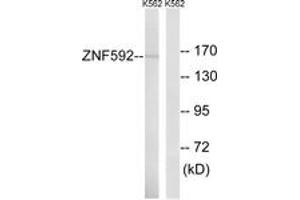 - The antiserum was produced against synthesized peptide derived from human ZNF592.