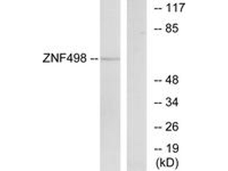 - The antiserum was produced against synthesized peptide derived from human ZNF498.