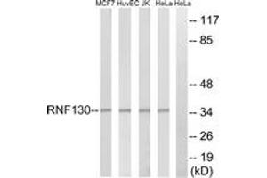 RNF130 Antibody detects endogenous levels of total RNF130 protein.