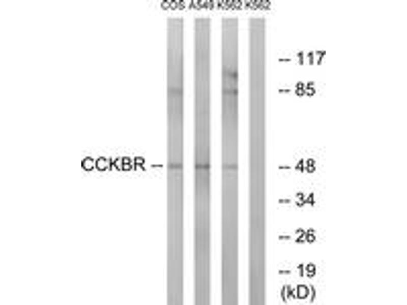 - The antiserum was produced against synthesized peptide derived from human CCKBR.