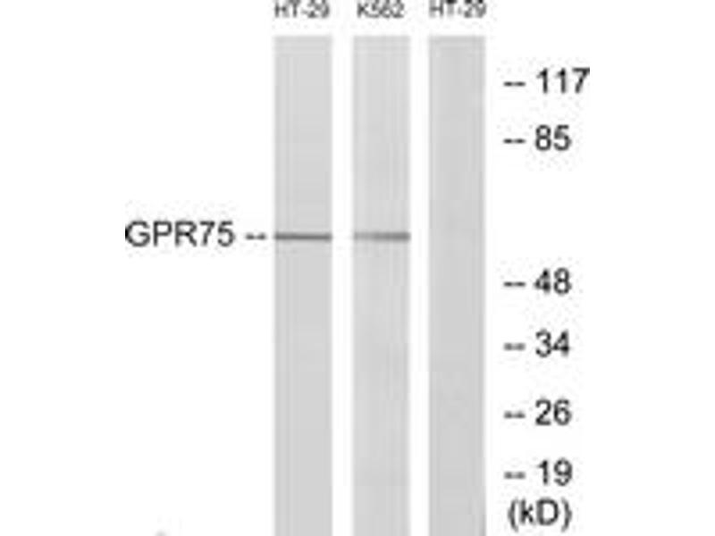 - The antiserum was produced against synthesized peptide derived from human GPR75.