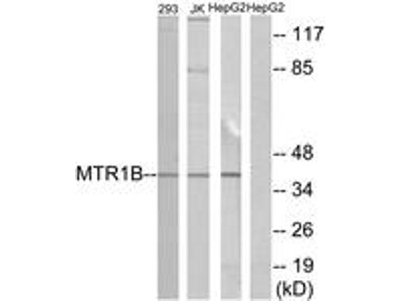 MTR1B Antibody detects endogenous levels of total MTR1B protein.