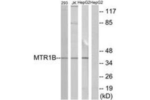 - The antiserum was produced against synthesized peptide derived from human MTR1B.