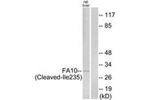 FA10 (activated heavy chain,Cleaved-Ile235) Antibody detects endogenous levels of fragment of activated FA10 resulting from cleavage adjacent to Ile235.