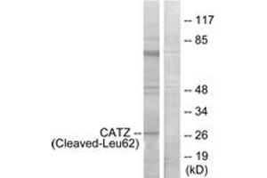 CATZ (Cleaved-Leu62) Antibody detects endogenous levels of fragment of activated CATZ resulting from cleavage adjacent to Leu62.