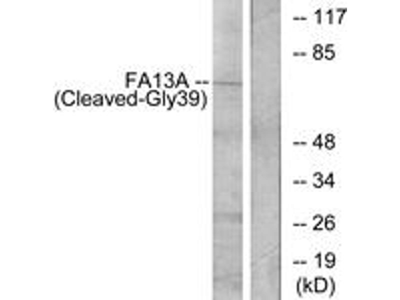 FA13A (Cleaved-Gly39) Antibody detects endogenous levels of fragment of activated FA13A resulting from cleavage adjacent to Gly39.