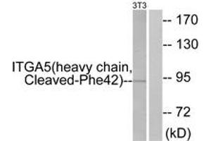 ITGA5 (heavy chain,Cleaved-Phe42) Antibody detects endogenous levels of fragment of activated ITGA5 resulting from cleavage adjacent to Phe42.