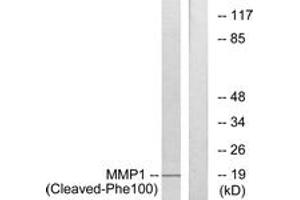 MMP1 (Cleaved-Phe100) Antibody detects endogenous levels of fragment of activated MMP1 resulting from cleavage adjacent to Phe100.
