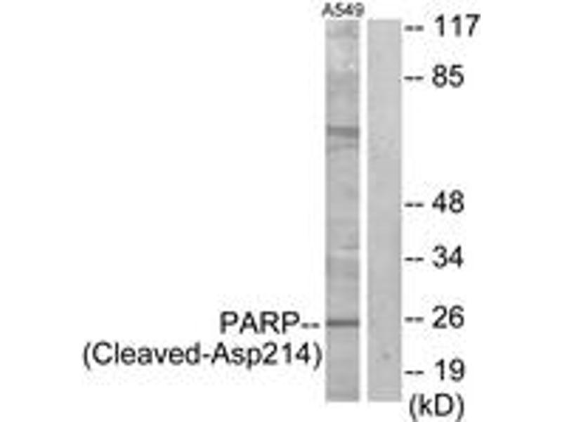 PARP (Cleaved-Asp214) Antibody detects endogenous levels of fragment of activated PARP resulting from cleavage adjacent to Asp214.