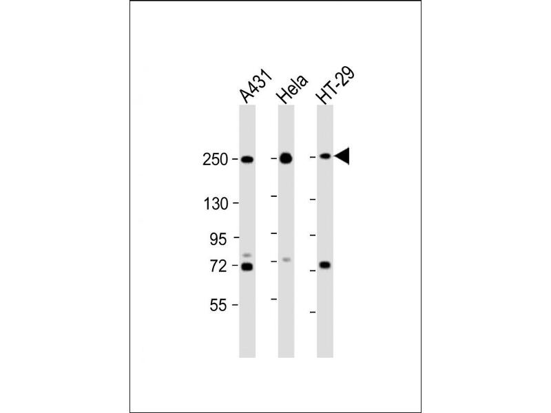 This MYH9 antibody is generated from rabbits immunized with a KLH conjugated synthetic peptide between 1840-1867 amino acids from the C-terminal region of human MYH9.