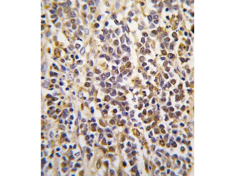 This ALDH1A3 antibody is generated from rabbits immunized with a KLH conjugated synthetic peptide between 318-348 amino acids from the Central region of human ALDH1A3.