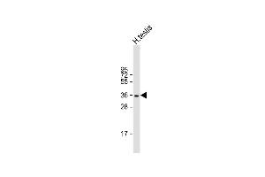 This WBP2NL antibody is generated from rabbits immunized with a KLH conjugated synthetic peptide between 9-36 amino acids from the N-terminal region of human WBP2NL.