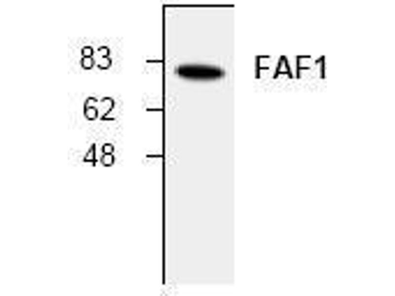 FAF1 (Fas-associated protein factor 1) specifically interacts with the cytoplasmic domain of wild type, but not mutated, Fas in both yeast and mammalian cells. When transiently expressed in T cells, FAF1 potentiates Fas-induced apoptosis. In contrast to TRADD, FADD, and RIP, FAF1 lacks a DDH (Death domain homologous region) and cannot induce apoptosis independent of Fas activation.Synonyms: CGI-03, FAS-associated factor 1, UBX domain-containing protein 12, UBX domain-containing protein 3A, UBXD12, UBXN3A