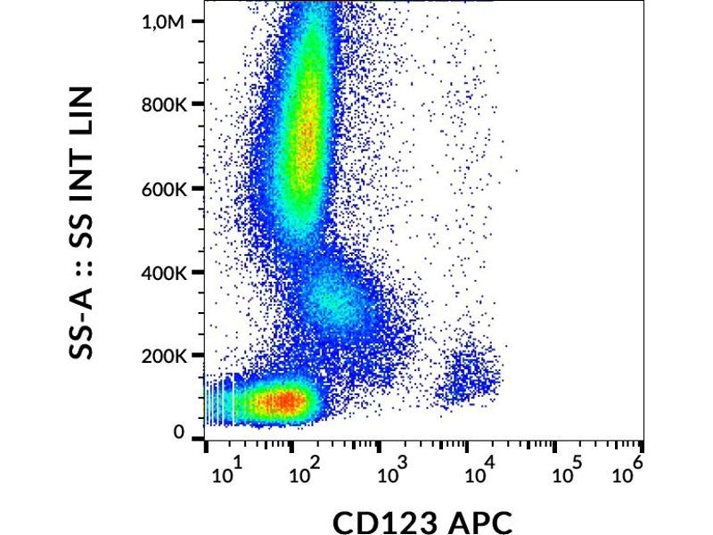 The APC-conjugated Mouse Monoclonal anti-IL3RA antibody (Clone 6H6) (ABIN1558083) specifically detects IL3RA in FACS.