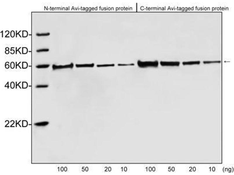 This Rabbit Polyclonal antibody specifically detects Avi-Tag in WB and ELISA. It exhibits reactivity toward and has been mentioned in 10+ publications.