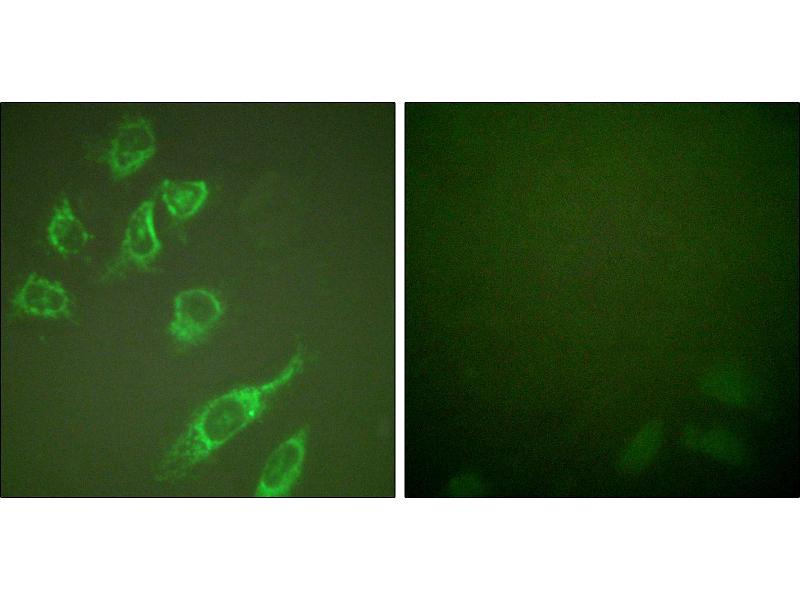 The antibody was affinity-purified from rabbit antiserum by affinity-chromatography using epitope-specific phosphopeptide. The antibody against non-phosphopeptide was removed by chromatogramphy using non-phosphopeptide corresponding to the phosphorylation site.