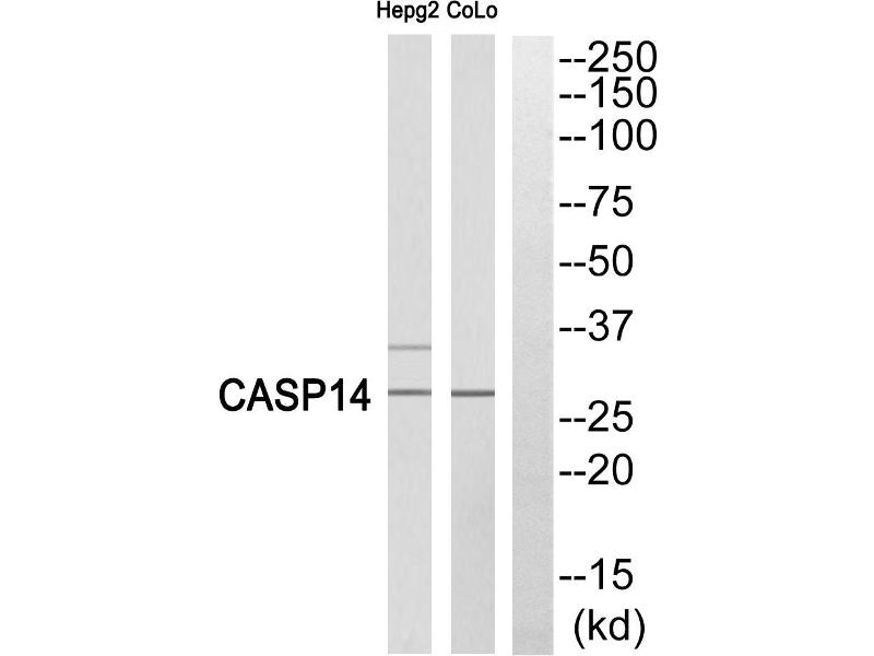 The Rabbit Polyclonal anti-CASP14 antibody (ABIN1575261) specifically detects CASP14 in WB and ELISA.
