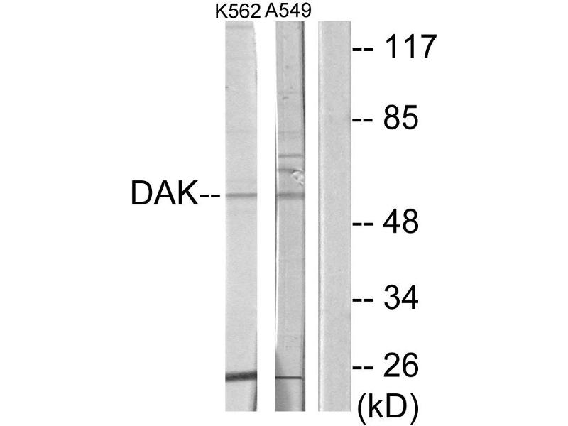 - The antiserum was produced against synthesized peptide derived from internal of human DAK.