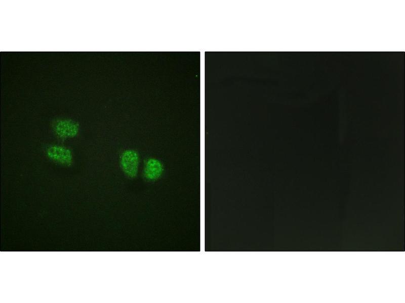 The antibody was affinity-purified from rabbit antiserum by affinity-chromatography using epitope-specific phosphopeptide. The antibody against non-phosphopeptide was removed by chromatography using non-phosphopeptide corresponding to the phosphorylation site.