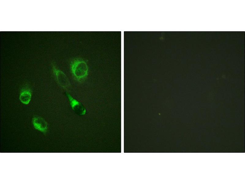 The antibody was affinity-purified from rabbit antiserum by affinity-chromatography using epitope-specific phosphopeptide. The antibody against non-phosphopeptide was removed by chromatography using non-phosphopeptide corresponding to the phosphorylation site.