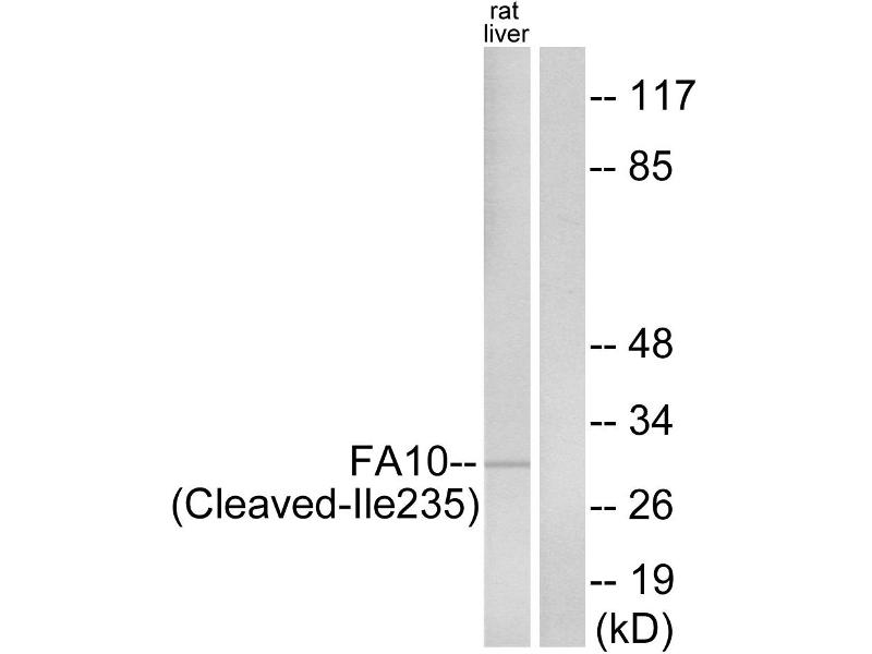 Quick Overview for Coagulation Factor X antibody (activated, Cleaved-Ile235, Heavy Chain) (ABIN1576413)