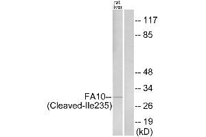 The antiserum was produced against synthesized peptide derived from human FA10.