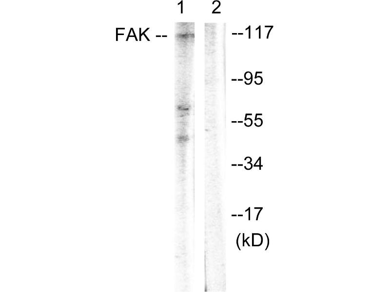 FAK (Ab-397) antibody detects endogenous levels of total FAK protein.