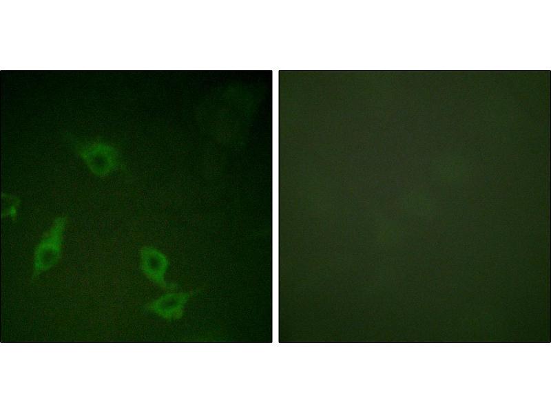 The antiserum was produced against synthesized non-phosphopeptide derived from human FAK around the phosphorylation site of tyrosine 397 (D-D-YP-A-E).