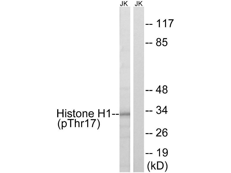 - The antiserum was produced against synthesized phosphopeptide derived from human Histone H1 around the phosphorylation site of threonine 17 (E-K-TP-P-V).
